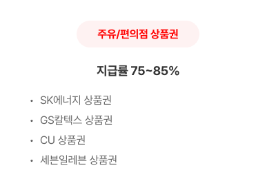 다양한 상품권 지원: 문화상품권, 해피머니, 도서상품권, 신세계상품권 등 모든 상품권 취급